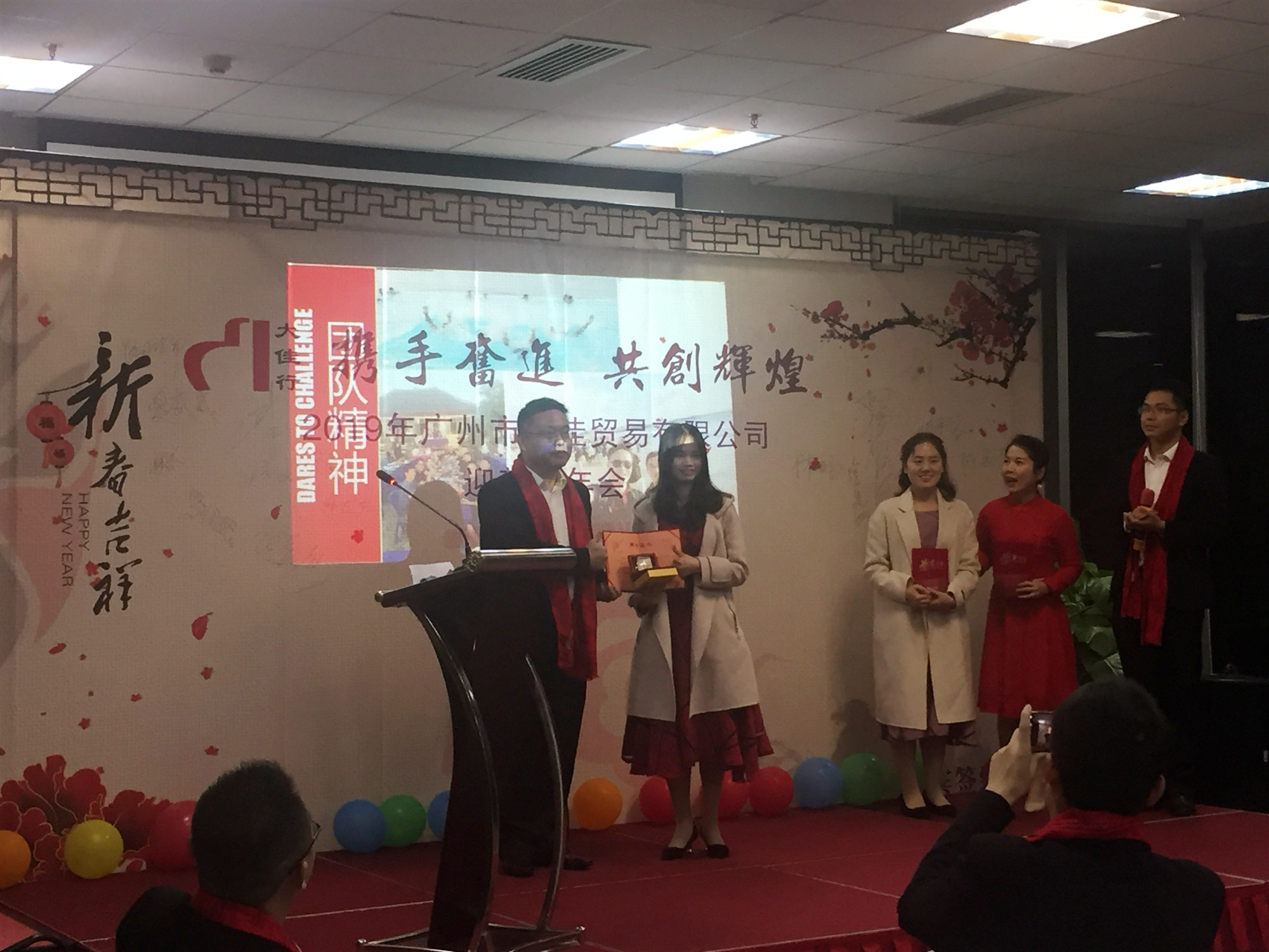 總經(jīng)理給三支花頒獎(jiǎng)